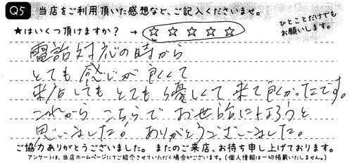 お言葉に恥じぬよう、ますますのサービス向上に努めてまいります。