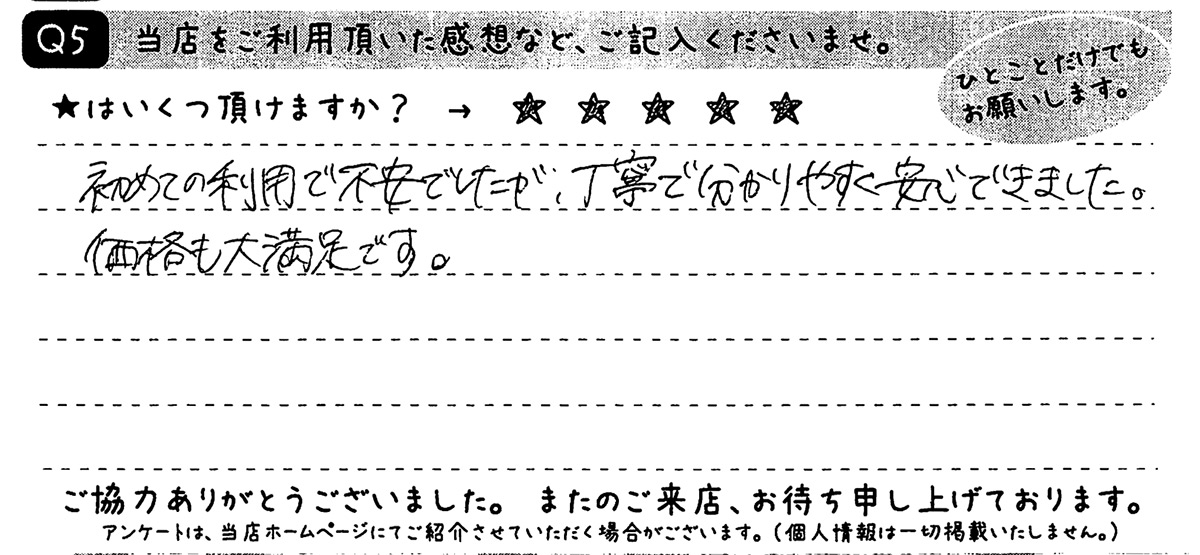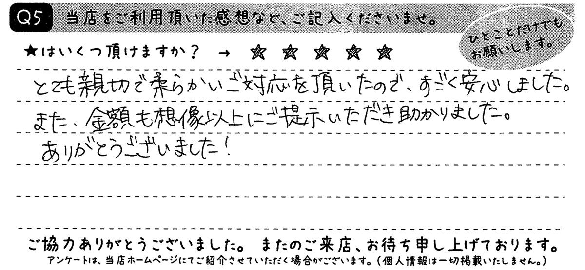 ご来店時のアンケートでこんなお声を頂きました。
